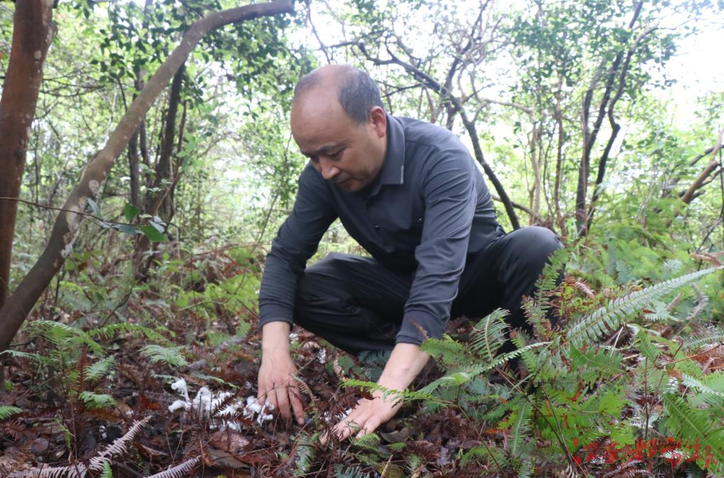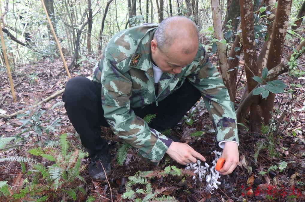 程政順介紹說:“前幾天上山去采古樹茶,偶然發現了幾株特殊的花兒,通過在網絡上比對辨認,得知它是水晶蘭。我怕有小動物來傷害它,就用帶刺的杉樹枝條來把它圍起來,然后向鄉政府林長辦報告。”