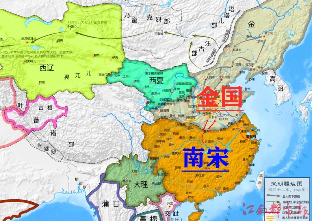紹興十一年(1141年),宋金簽訂《紹興和議》,南宋向金稱臣納貢,兩國東以淮河,西以大散關(guān)為界。