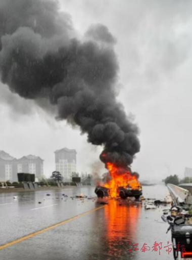 此時(shí),暴雨如注,雷斯航的力氣幾乎耗盡。一名路過(guò)的司機(jī)大叔沖上來(lái)幫忙,緊接著更多市民加入救援。他們合力將受傷人員轉(zhuǎn)移到約100米外的安全綠化帶旁。就在脫離險(xiǎn)境的瞬間,身后傳來(lái)震耳的爆裂聲——整輛車被沖天烈焰徹底吞沒(méi)。確認(rèn)被救司機(jī)仍有呼吸后,雷斯航請(qǐng)大叔幫忙報(bào)警,自己則一直守在傷者身旁,直到交警和救護(hù)人員抵達(dá)現(xiàn)場(chǎng)。隨后,他默默騎上電動(dòng)車,趕著去配送即將超時(shí)的外賣訂單。