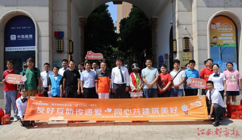 為進一步構建騎手友好互助社區,切實關懷新就業群體,2025年7月30日,九洲街道在西湖區委社會工作部的領導下,聯合中海物業南昌公司黨支部,在中海朝陽郡?鉑宮小區隆重舉行了騎手友好共建服務活動啟動儀式。西湖區委社會工作部九洲街道及中海物業南昌公司黨支部領導、轄區騎手及戶外勞動者代表共計百余人齊聚現場。區委社會工作部精心準備了防暑降溫禮包,為到場的新就業群體代表發放了包含涼茶、綠豆、銀耳等夏日物資,傳遞了夏日別樣“清涼”。同時,街道與物業共同提供的夏日清涼愛心飲品柜也正式投入使用,當天累計發放物資500余件,以“看得見、摸得著”的暖心舉措傳遞城市溫度,讓高溫下的勞動者真切感受到社會各界的貼心關愛。
