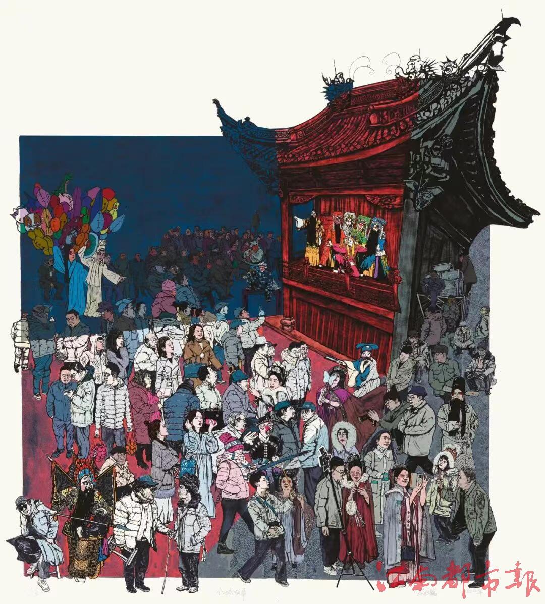 “青春飛揚”采用推薦與評審結合的方式,即由專家提名作者、作者自選作品、專家評審定展——賦予參展作品鮮明的價值特性。它不僅保障了創(chuàng)作者的自主性和創(chuàng)作過程的偶然性,也確保了作品的當下性與時效性。青年藝術家的視角,使他們在探索個人藝術語言的同時,自覺融入了對現(xiàn)實生活的深切觀照,清晰折射出本年度中國版畫創(chuàng)作的多元風貌。展品題材廣泛,既有對城市化進程、鄉(xiāng)村振興等社會現(xiàn)實的關注與描繪,也包含對中國傳統(tǒng)文化元素的當代轉(zhuǎn)化與表達,更不乏對個體生存狀態(tài)及哲學命題的深刻思考。展覽旨在通過精品展示、學術梳理、作品收藏及國內(nèi)外巡展交流等形式,全方位呈現(xiàn)中國當代青年版畫創(chuàng)作的最新成果、前沿探索與審美追求。回望中國版畫發(fā)展歷程,青年始終是革新的核心驅(qū)動力。他們握刀的手所承載的信念,既是對傳統(tǒng)的重鑄,亦是對未來的啟明。本次展覽為青年藝術家搭建了展示才華的舞臺,鼓勵他們在創(chuàng)作中釋放個性、探索版畫藝術的邊界;更激勵他們以蓬勃的朝氣關注時代與生活,銳意創(chuàng)新,求新求變。本次展覽由中國文化藝術發(fā)展促進會、江蘇省文化投資管理集團、江西省美術館聯(lián)合主辦,中國文化藝術發(fā)展促進會版畫院、江蘇藝術中心、江蘇大劇院、江蘇大劇院藝術基金會共同承辦。