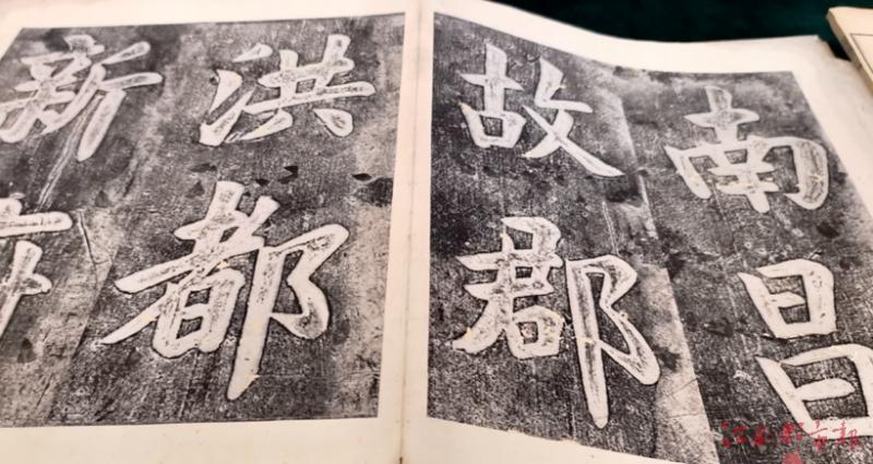 南昌民間著名藏書樓新風(fēng)樓的第二代傳人王令策,曾擔(dān)任南昌大學(xué)江右哲學(xué)研究中心《贛文化研究》編委及副主編。其父王咨臣,作為一位深具影響的文化學(xué)者,對滕王閣的歷史與文化做過深入而系統(tǒng)的權(quán)威研究?! ≡诋?dāng)天的曬書活動中,王令策帶來了清代書法家、文學(xué)家翁方綱所書的《滕王閣序》碑刻拓本。該拓本體量頗大,每字約有巴掌大小,可遙想當(dāng)年原碑氣象之壯觀。
