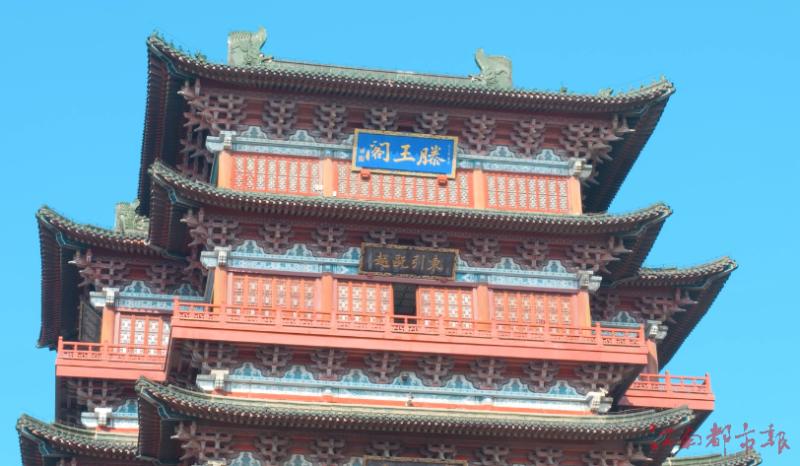 高懸于滕王閣頂層的“滕王閣”三字取自蘇軾墨跡