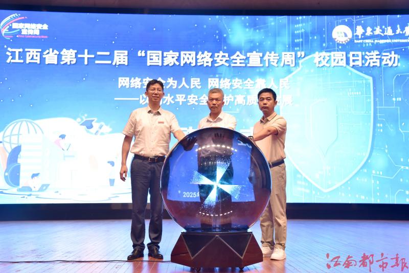 本報訊 陳君、王宇濤、全媒體記者趙瓊攝影報道:9月16日,由省委網信辦、省委教育工委、省教育廳主辦,華東交通大學承辦,江西省教育技術與裝備發展中心、江西教育網絡安全應急中心(東華理工大學)、江西省高校教育信息化學會以及江西省高等教育學會教育數字化分會共同協辦的江西省第十二屆“國家網絡安全宣傳周”校園日活動在華東交通大學舉辦。