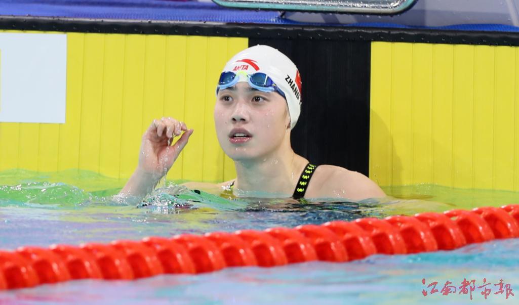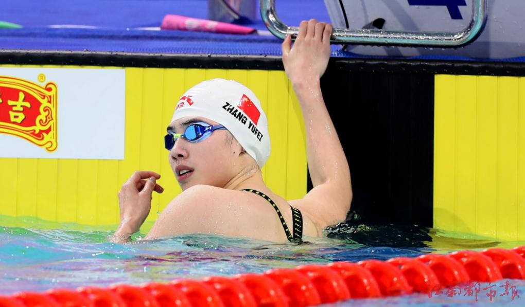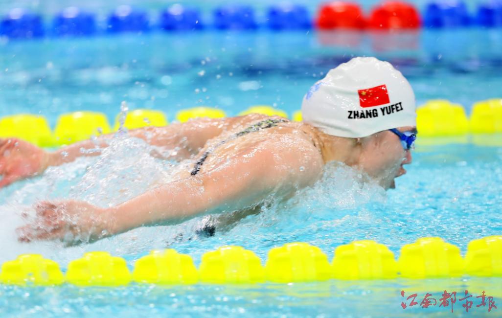 江南都市報訊 全媒體特派記者許南平攝影報道:11月11日晚,第十五屆全運會游泳女子100米蝶泳決賽,江蘇名將張雨霏以56秒88成功衛冕,這是她在本屆全運會上獲得的首金。本場比賽參賽的有來自湖北的江雨瑤,浙江的呂越、周鑫垟,遼寧的王靖卓,重慶的龔真琦和楊王詩雅,山東的王一淳。其中,最受關注的就是張雨霏,作為“蝶后”,在此前進行的100米蝶泳預賽,張雨霏以58秒84的成績排名小組第一,順利晉級半決賽。隨后的半決賽上,張雨霏游出了57秒22的成績,以明顯優勢晉級決賽,不過對于此成績,她不是特別滿意,表示自己的狀態不是很好。11月10日,本屆全運會游泳比賽在深圳大運中心游泳館拉開帷幕,上演速度和激情的盛宴,為期8天的比賽將產生總計41枚金牌。